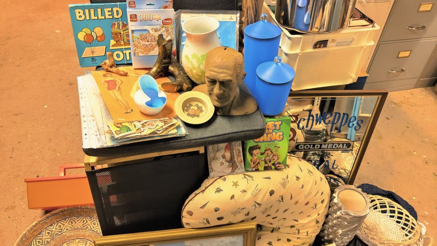 Loppemarkedet byder på alt fra smykker og antikviteter til billeder, køkkenudstyr, lamper, retro, spil og pyntegenstande fra kendte brands. Alle lopper er doneret af byens borgere. Der er rig mulighed for at gå loppe-amok.