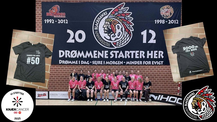 Frederikshavn Blackhawks’ damehold havde i forbindelse med kampen sat fokus på Knæk Cancer og Kræftens Bekæmpelse. Der blev solgt lodder både under U11-stævnet tidligere på dagen og til ligakampen - alt sammen for at samle penge ind til et formål, der berører os alle.