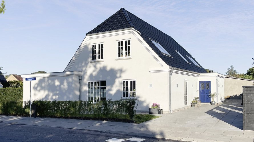 Det drejer sig om en totalrenoveret villa fra 1950. Villaen er blevet transformeret fra et A-hus til en præsentabel klassisk murermestervilla, der med et kompakt, velproportioneret og stilfærdigt udtryk, forskønner området og står i skarp kontrast til sin "trætte" forgænger.
