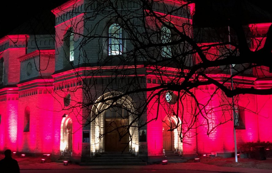 Mens Krudttårnet vel nærmest kan betegnes som en klassiker, når EUC-Nord "leger med lys", var det første gange siden lysfestivalen helt tilbage i 2004, at Frederikshavn Kirke optrådte i mere farverige nuancer.