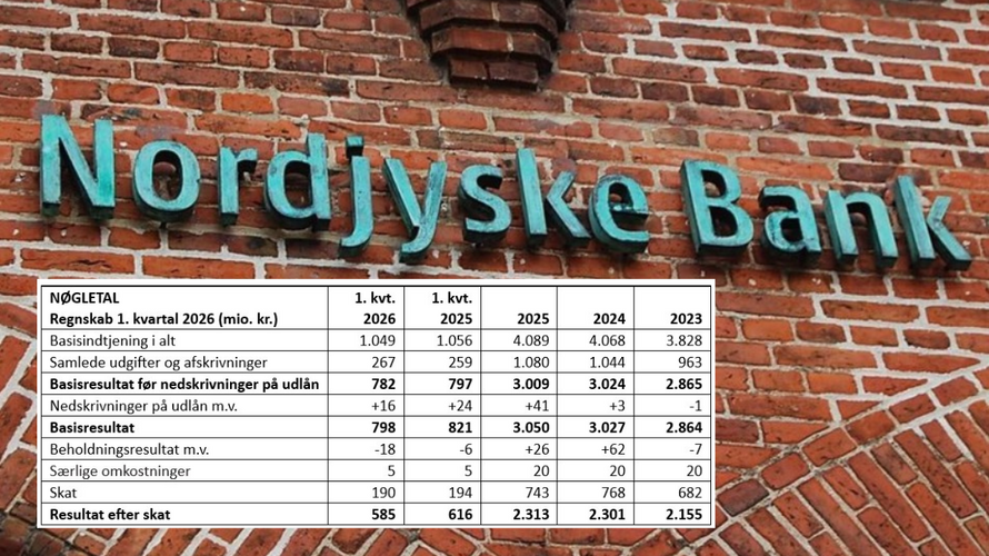 Nordjyske Bank, der er en del af Ringkjøbing Landbobank, har i dag offentliggjort sit regnskab for 1. kvartal 2026. Banken fik et resultat efter skat på 585 mio. kroner, og det er blandt andet opnået via en udlånsvækst på ikke mindre end 14 procent sammenlignet med samme periode sidste år.