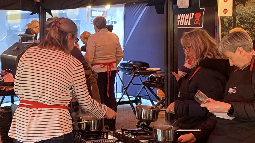 - Jeg har før deltaget i Weber-arrangementer, men dette er det første kun for kvinder. Vi har det rigtig hyggeligt, og vi lærer at lave mad på grillen, så det ikke kun er forbeholdt manden, og vi lærer også at lave andre ting end de traditionelle. Vi bliver placeret på forskellige hold, og jeg har både taget fri fra arbejde og droppet hjemmet og de varme hveder for at kunne deltage. Det er sjovt at få noget inspiration til forskellige retter, og vi laver både forret, hovedret og dessert på grillen, siger Stella Christensen.