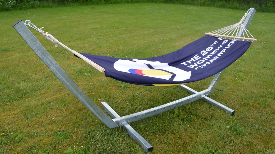 - Ja, tak vi skal nok finde på noget at bruge bannerne til. Vi involverede derfor vores ansatte i at udvikle idéer til nye designs, og nu er vi klar med en lille produktserie bestående af hængekøje, strandtaske, sækkestol og en puf til at hvile benene, siger Topvirks direktør, Ole Jensen.