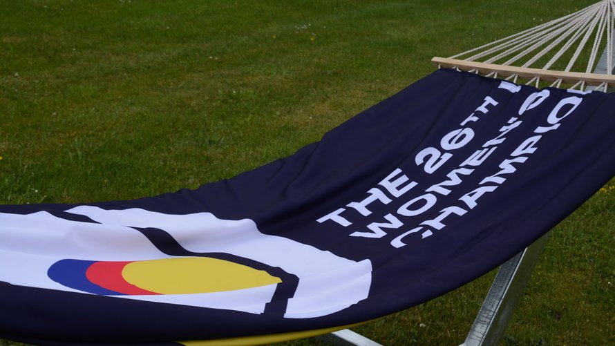 Hele Arena Nord i Frederikshavn og Boxen i Herning var klædt i farverige bannere, da kvindernes håndbold-VM blev afviklet i december 2023. Nu bliver materialet genanvendt til hængekøjer, indkøbsnet og sækkestole.