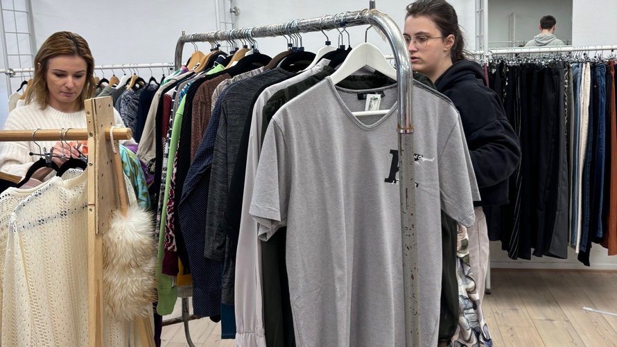 Forleden var eleverne igen i butikken og gjorde ginerne klar med smart tøj, ligesom de hjalp med at sortere og hænge tøjet på de opstillede stativer.