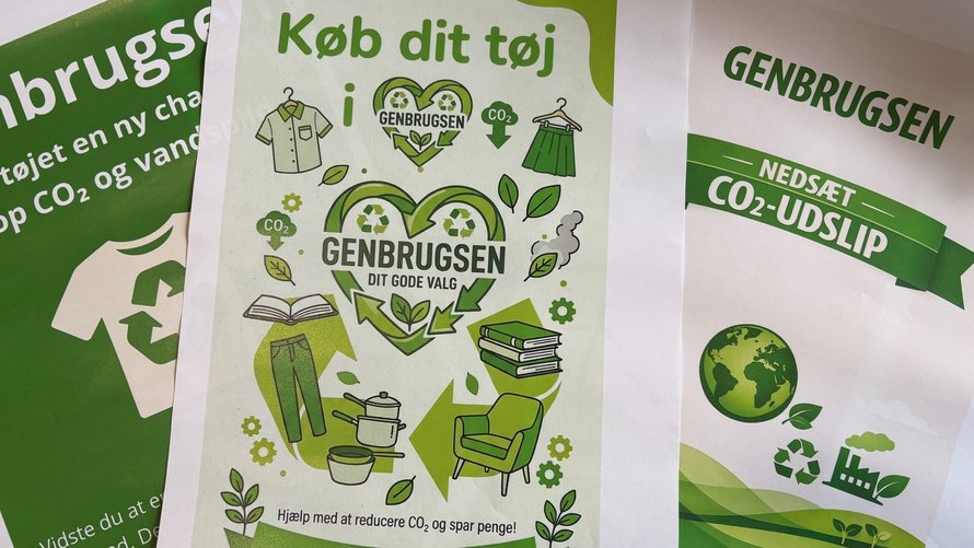 I dag åbner GENBRUGSEN sin afdeling med tøj og sko i Danmarksgade 52. En handelsskoleklasse har lavet tegninger med indretningsforslag og plakater med understregning af fordelene for miljøet med genbrug.