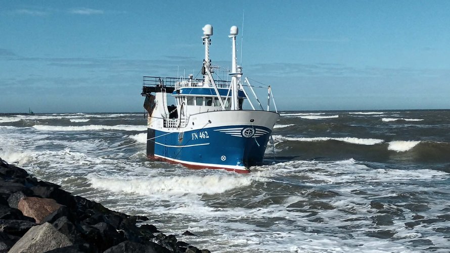 Forholdene viste sig dog vanskelige. Kraftige vindstød af kulingstyrke kombineret med en langsgående strøm på tværs af havneindløbet gjorde manøvren udfordrende, og under indsatsen endte FN 462 Jeanne med at gå på grund cirka 50 meter fra Nordmolen, skriver FiskerForum.
