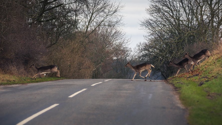 • Vær opmærksom på, at for eksempel hjortevildt er flokdyr. Der vil derfor ofte komme mere end ét dyr ud på vejen.