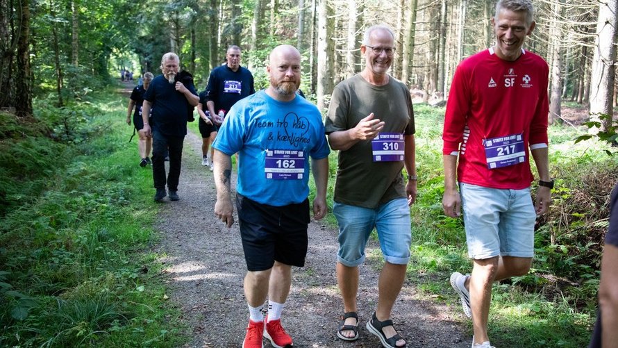 Men vejrgudernes vrede kunne ikke stoppe stafetten eller spolere humøret hos de mange deltagere, der mødtes for at samle penge ind til Kræftens Bekæmpelse. Og heldigvis drev uvejret hurtigt videre, og løbet på den to kilometer lange rute i Knivholtskoven kunne genoptages.