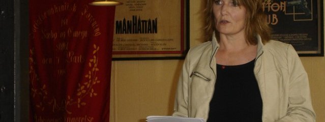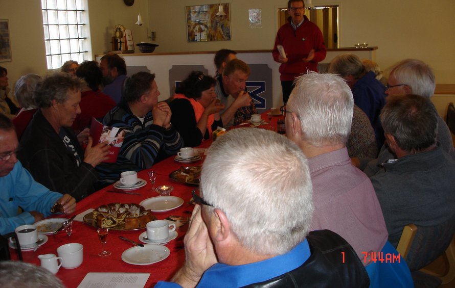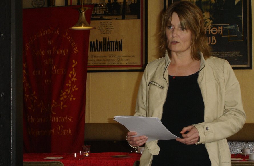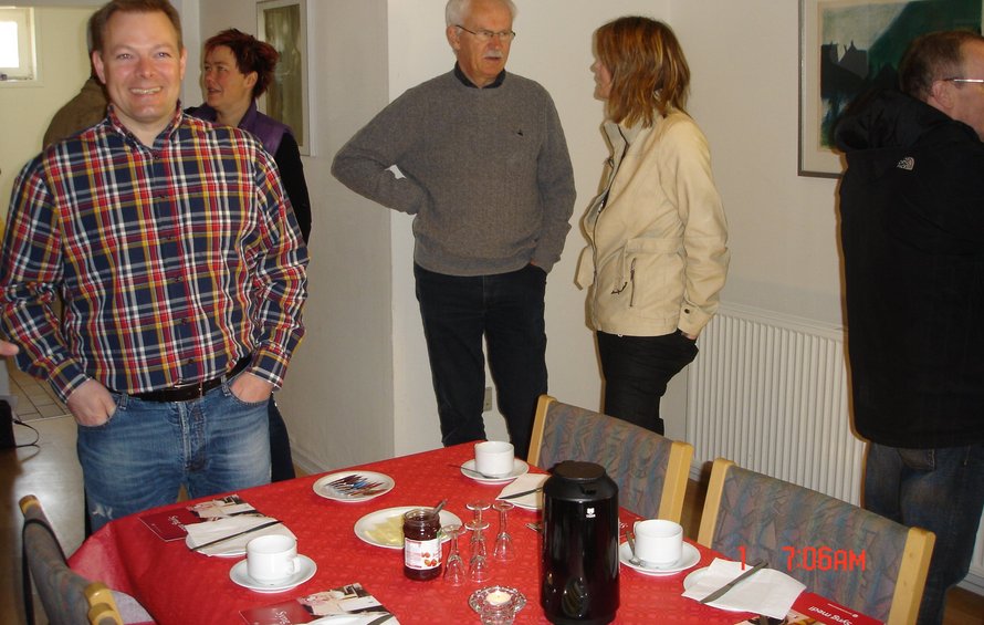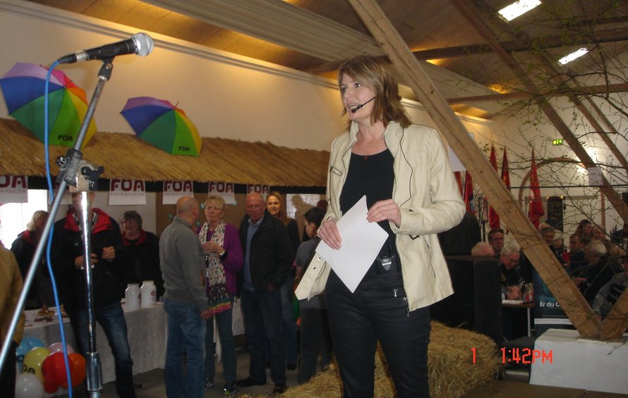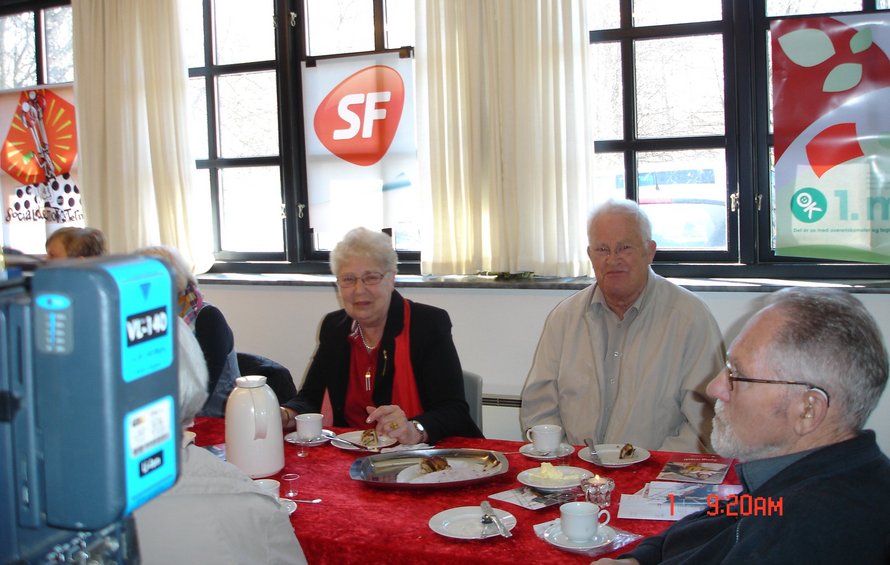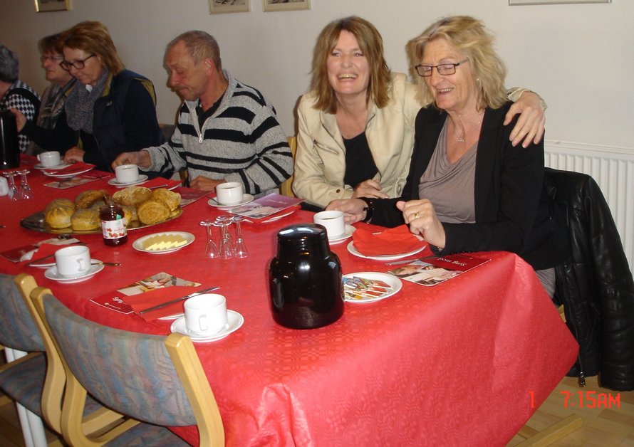 Efter tre kvarter var det igen tid at bryde op, og Birgit takkede Skagen for en dejlig opstart på kampdagen, inden kursen mod hyggelige gamle Skovlyst i Sæby blev sat. Her skulle dagens næste arrangement starte kl. 9, og talere var igen Bjarne Laustsen og Morten Dahlberg samt Teis Volstrup og Christine Lykke fra SF. I Sæby ventede også dagens morgenbord nr. 2, og Birgits forældre og mand, der mødte frem for at lytte til datter og kone. Også andre gode kammerater fra SF, Enhedslisten, fagbevægelsen og organisationen var mødt frem, og i alt var 60 mennesker fremmødt. Bifaldet her efterlod igen et indtryk af, at ordene fra Birgit faldt i god jord. Da alle talere havde haft ordet, var det tid til en pause inden det næste arrangement i Frederikshavn, men dog ikke for Birgit. Pausen skulle nemlig udnyttes til at skrive en ny tale til et andet arrangement torsdag samt svare på opkald og sms.
