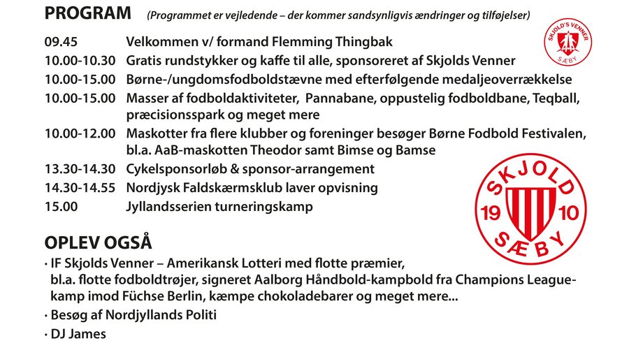 - Vi glæder os f.eks. til at byde velkommen til en masse maskotter fra andre klubber. Tak til Fortuna Hjørring, AaB, White Hawks, Hobro med flere. En af traditionerne i forbindelse med vores Børnefodboldfestival er vores cykelsponsorløb. De seneste mange år har erhvervsfolk, politikere, og fodboldspillere kørt penge ind til klubben, og i år bliver det ekstra sjovt, lover Flemming Thingbak.