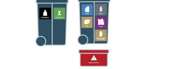Folketinget har vedtaget, at affaldssektoren i Danmark skal være klimaneutral i 2030. Vi skal derfor genanvende vores affald i langt større omfang end tidligere. Det betyder, at alle borgere fremover skal sortere i 10 affaldstyper: Madaffald, papir, pap, glas, metal, plast, mad- og drikkekartoner, restaffald, farligt affald og tekstilaffald. Udover den nuværende beholder til mad- og restaffald får vi en ekstra beholder til genanvendelige affaldstyper og en mindre miljøkasse til farligt affald.