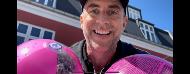 Vi talte med ham, mens hans delte balloner ud til flere børn i gågaden.
