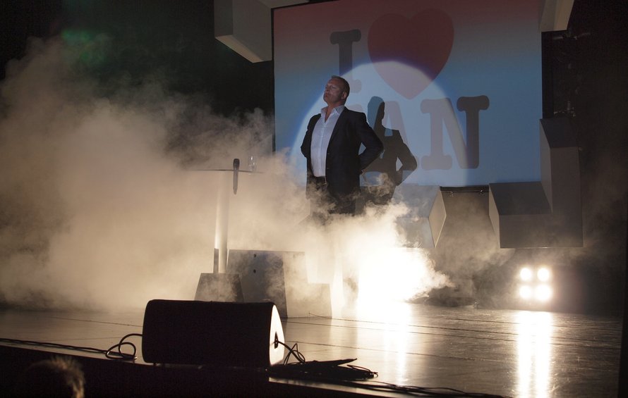 En af Danmarks morsomste mænd gæstede onsdag aften Det Musiske Hus i Frederikshavn. Det skete i forbindelse med hans turné rundt i landet med showet ”I love Jan” – og efter, at hr. Gintberg i bedste Thomas Blachman-storhedsvanvid-stil havde indtaget scenen i røg og damp tilsat hvide duer proklamerede aftenens hovedperson, at det hele skulle handle om ham selv.
