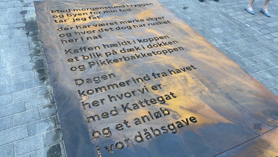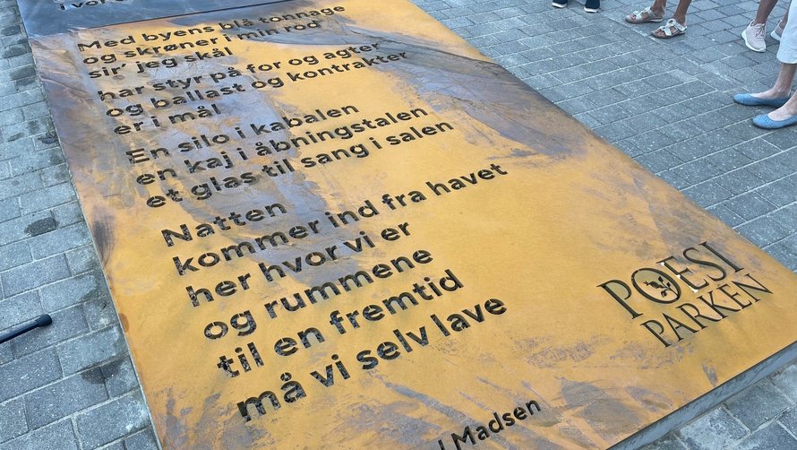 Lørdag kl. 12.00 blev værk nr. 49 i Frederikshavn Poesipark afsløret foran Kattegat Silo i Frederikshavn. Værket vejer 1,5 ton og er en gave fra Frederikshavn Maritime Erhvervspark (FME) og Lauritzen Fonden i anledning af FME's 25-års jubilæum netop i dag.