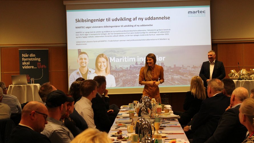 Direktør hos MARTEC, Pia Ankerstjerne, efterfulgte ministeren og fortale om MARTEC og den nye maritime ingeniøruddannelse, som er et resultat af Ane Halsboe-Jørgensens indsats.