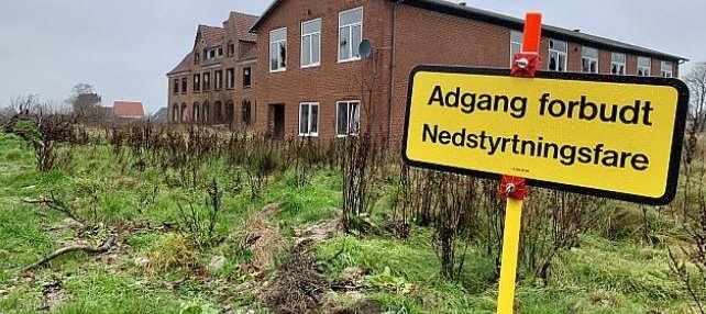 "Adgang forbudt - nedstyrtningsfare". Sådan står der på skilte, som Frederikshavn Kommune har sat op omkring den nedlagte realskole i Dybvad efter en inspektion af bygningen.