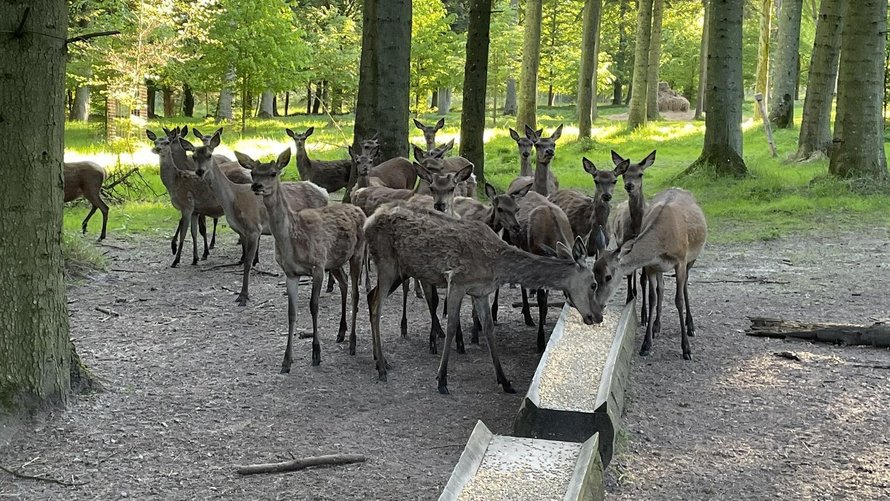 Ifølge Bo Storm er der p.t. kronvildt, rå- og dådyr, men ingen sikaer i parken.