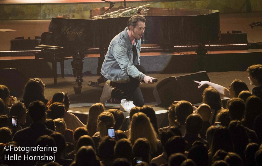 Der var smil og glæde hele vejen rundt, da han endelig stod på scenen, lod sig hylde, satte sig til klaveret og senere opfordrede til fest og "to lapper i vejret". En anden opfordring, der kom fra scenen, var at være til stede i nuet og ikke se hele koncerten gennem mobiltelefonen. Noget, som kan være temmelig svært i den her "se-mig-opdateringstid", vi lever i.