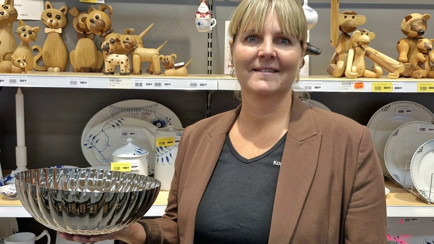 - Vi har for eksempel solgt 4.000 magneter i 2024 til 40 kroner stykket. Men vi har også solgt masser af dansk design som lysestager og skåle fra Georg Jensen og Royal Copenhagen, som især amerikanerne, englænderne og australierne spørger efter.