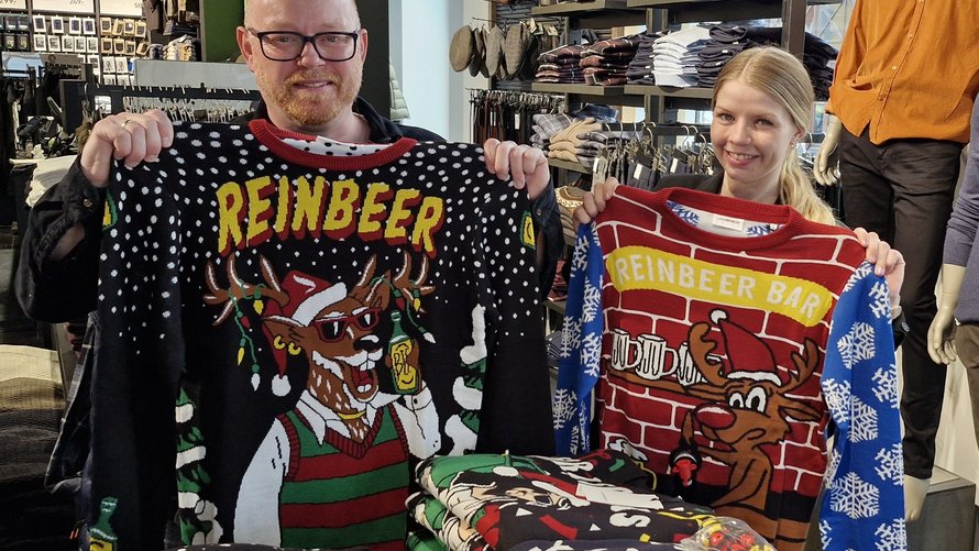 - Vi ved ikke præcis, hvad kunderne vil købe, men vi oplever ofte, at de spørger efter danske brands. Her i oktober har vi solgt noget helt andet end pæne skjorter og T-shirts. Der er gået rigtig mange sjove juletrøjer til de tyske gæster, siger Kim Larsen.