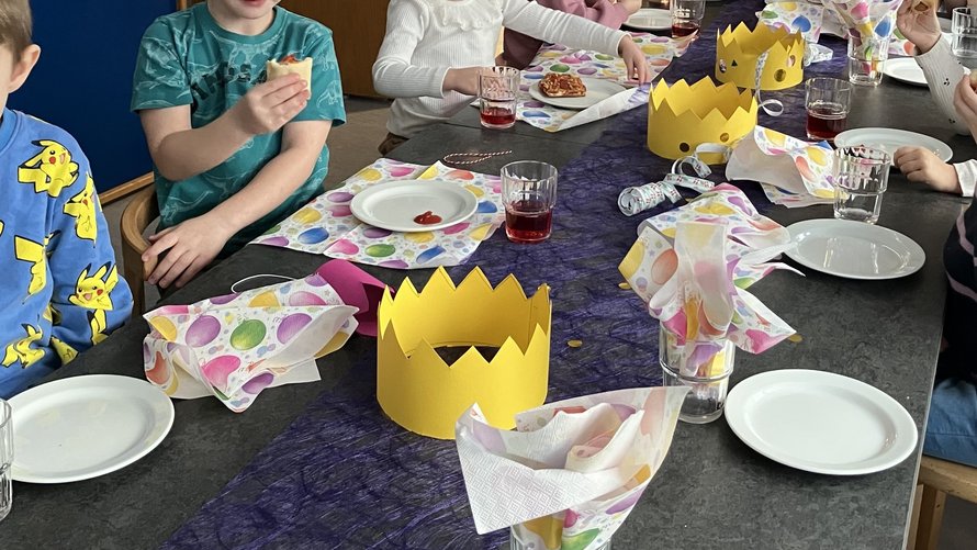 Børnene havde selv lavet kroner, pyntet bord og var mødt op i festtøj.
