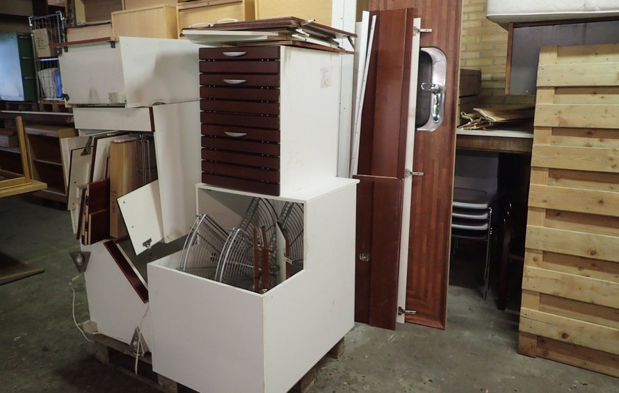 - Vi sælges mange nye og brugte materialer og inventar, f.eks. forskellige vinduer (bl.a. Velux), indvendige døre, polstrede stole med og uden armlæn, forskellige borde og stålarkivskabe med to skuffer. Forskellige elementkøkkener med bordplade og vask og meget mere. Alt sammen noget, som er skænket af lokale forretninger, institutioner, håndværkere og private, oplyser Kurt Berg Larsen, Lions Club Bannerslund.