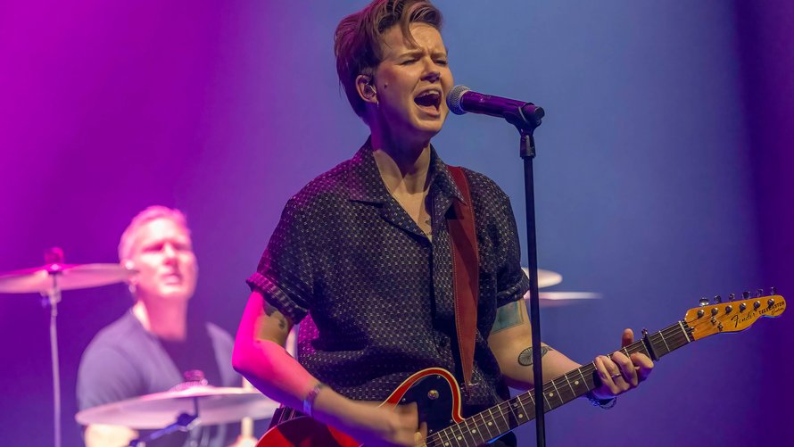 Onsdag aften trådte Rikke Thomsen med band ind på scenen i Det Musiske Hus. Entreen skete med bulder og brag med en heftig intro, der gled over i ”De Ganze Schweinerei”. Her fik Rikke slået fast, at hun er en ægte rockmama med den rigtige drengerøvsfacon – sorte jeans og T-shirt, guitarspil i alskens positioner, hop som afslutning på nummer og Status Quo-lignende triospil sammen med guitaristen og bassisten.