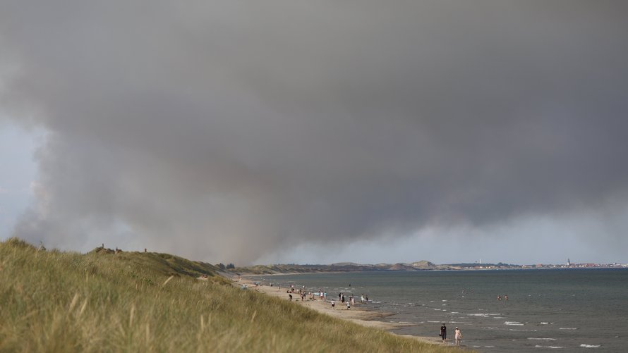 Branden har ikke bredt sig til Den Tilsandede Kirke, som ligger i det område, hvor naturbranden blev opdaget kort efter kl. 14.00. Årsagen til branden er endnu ukendt. Ingen er tilsyneladende kommet til skade.