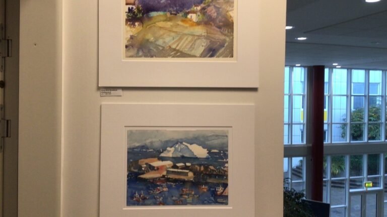 Udstillingen Nordisk Akvarel 2025 på Frederikshavn Kunstmuseum får et efterliv som Nordjysk Akvarel på sygehuset - museets "filial" på røntgengangen på første sal.