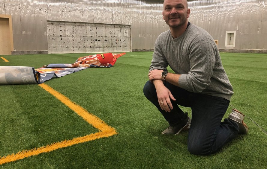 Martin Høeg købte bygningen på Suderbovej 13 for seks år siden. Dengang var det planen at åbne tre indendørs fodboldbaner i efteråret. Stor travlhed forsinkede planerne i næsten seks år. Men nu skal det være, og projektet bliver større end planlagt i 2014.
