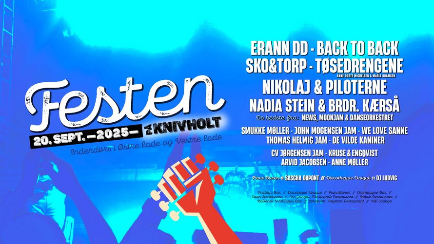 Lørdag 20. september ser en ny festival dagens lys i Frederikshavn. Festivalen hedder FESTEN på Knivholt, den afvikles indendørs, og arrangørerne lover hits på hits, Pianobar, mad i særklasse og en genoplivning af Discotheque Unique.