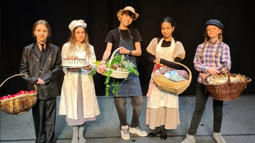 På scenen står et hold på 25 engagerede skuespillere i alderen 5. til 7. klasse. Med energi og talent bringer de eventyret til live på ny.