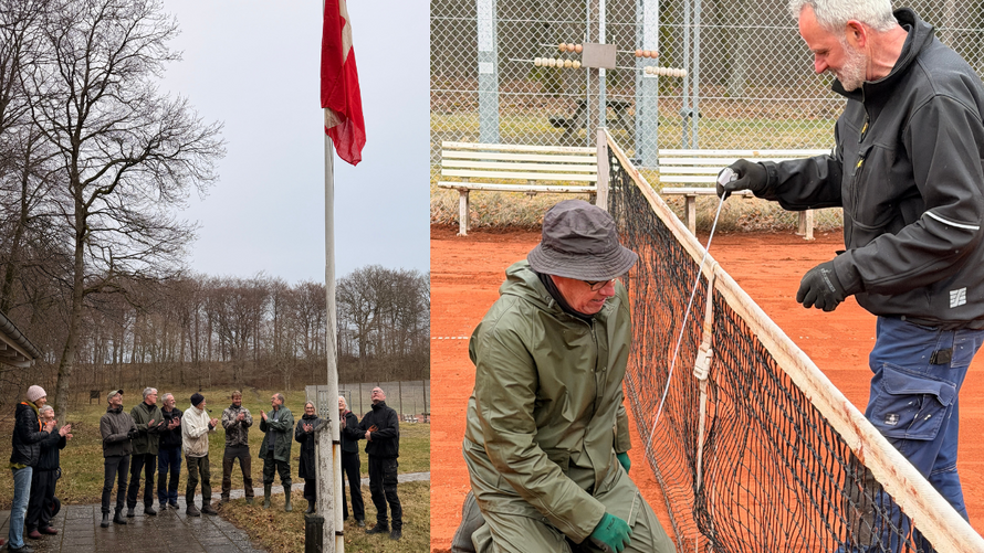 I stedet trak tennisspillerne i arbejdstøjet efter den officielle åbning af sæsonen, hvor klubbens nye formand, Thomas Jørgensen, sammen med en af klubbens mest erfarne damespillere Jette Brønnum sendte Dannebrog til tops.