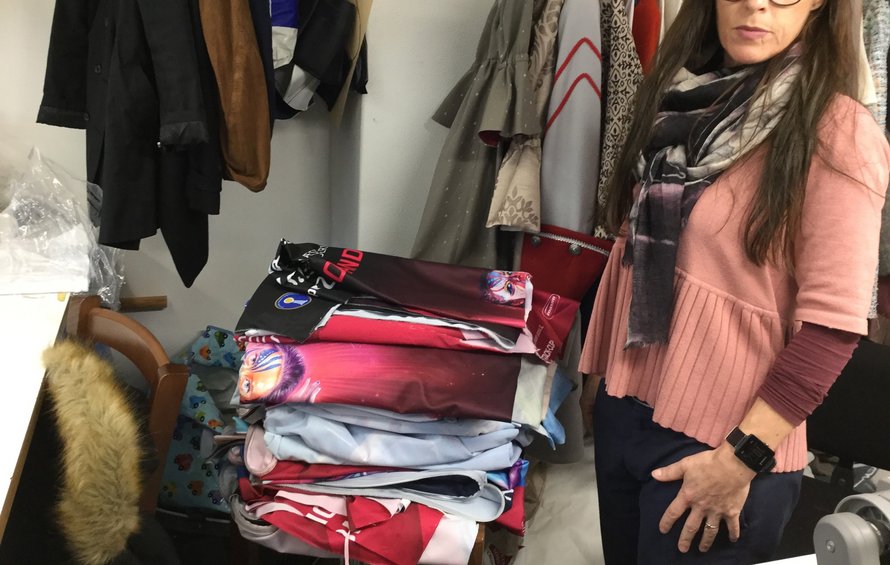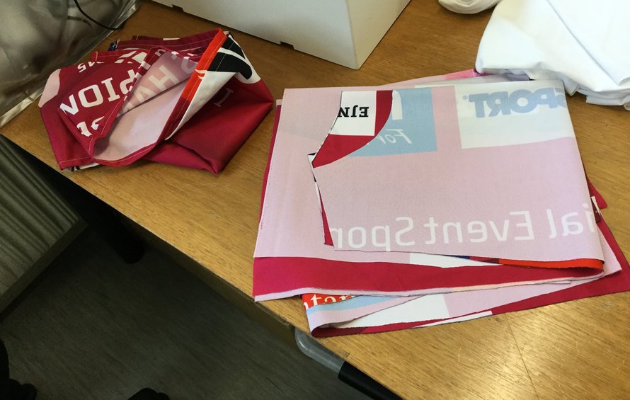 - På samme måde vil vi gerne i kontakt med andre virksomheder, der har et ønske om at bidrage til den grønne omstilling gennem genbrug af de ting og materialer, som de skal smide ud eller ikke længere skal anvende i deres egne produktioner, siger Lykke Reffeldt, mens hun viser prototyper på vasketøjsposer og holdtrøjer i blødt stof, der engang har været reklamer i Arena Nord i Frederikshavn.