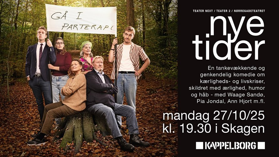 Mandag 27. oktober kan publikum i Skagen opleve gæstespillet "Nye Tider" på Kulturhus Kappelborg.
