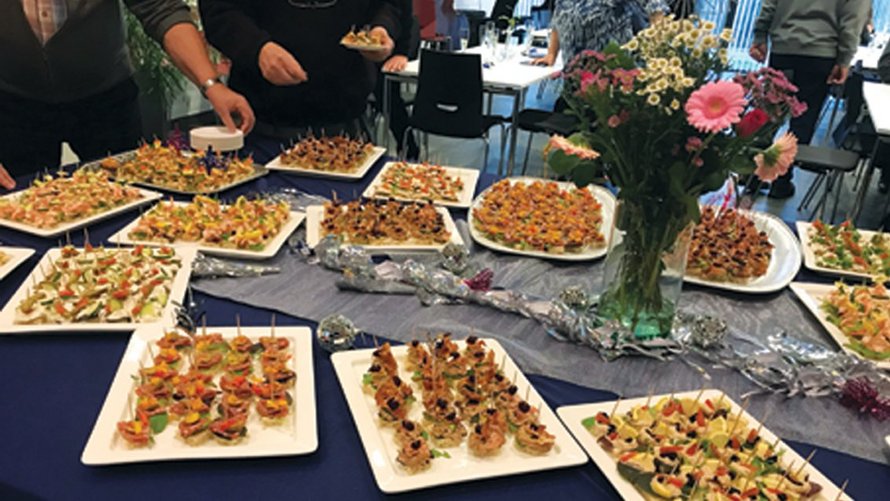 Efter andagten bevæger man sig ind i Kirkecentret, hvor der bliver serveret bobler og kaffe og lidt godt til ganen.