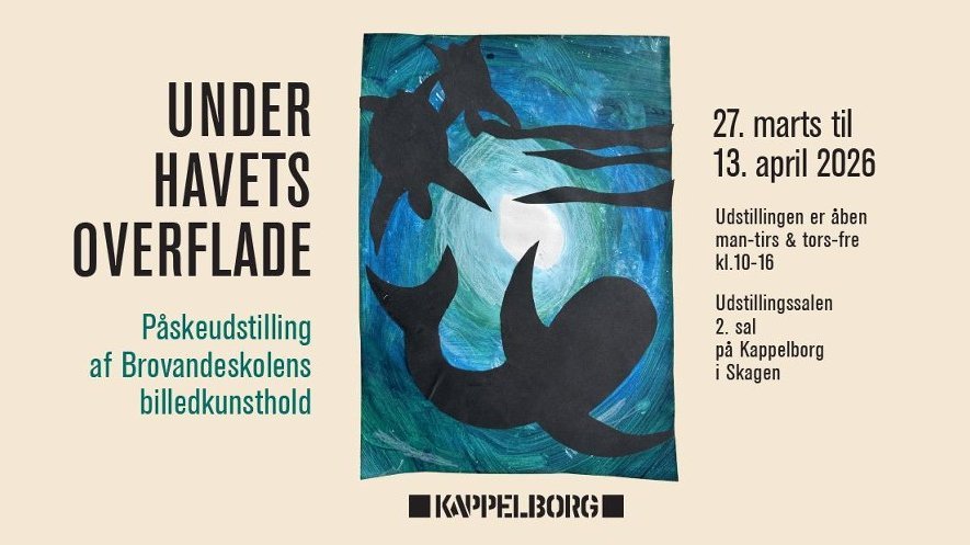 Kulturhus Kappelborg og Brovandeskolen – Lilleskolen i Skagen præsenterer i påsken 2026 udstillingen "Under havets overflade", hvor børnenes egne kunstværker danner ramme om en sanselig og eftertænksom oplevelse for besøgende i alle aldre. Udstillingen viser et bredt udvalg af æstetiske udtryk, der både appellerer til øjet og inviterer til refleksion.