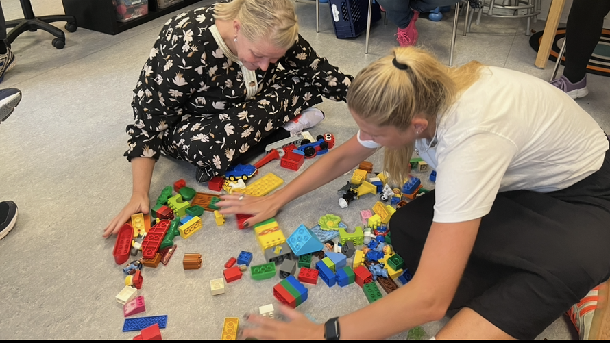 - Vi løftede tre dilemmaer op i en debat med Mette og Monopolet. LEGEPALETTEN og de forskellige legetyper blev også sat i spil, og for at koble teori til praksis skulle de voksne lege og reflektere over, hvordan legen kunne justeres til det enkelte barn eller børnegruppe samt den voksnes rolle og positioneringen i legen. Der blev leget med LEGO, modellervoks, rolleleg med playmobil, leget sanglege med mere, fortæller Mette Hesthaven.