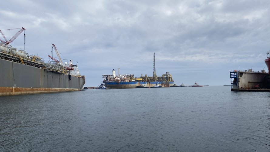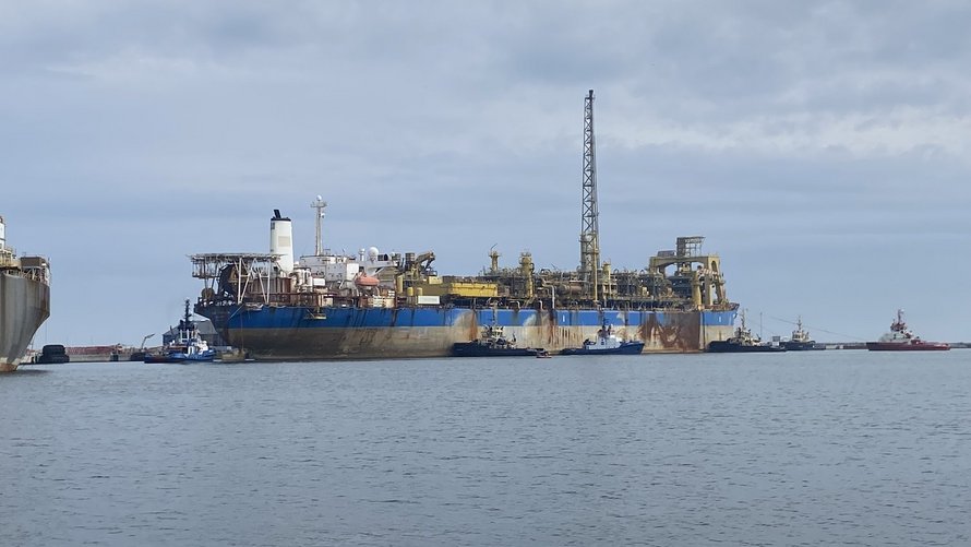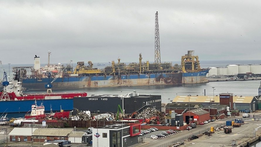 Direktøren fortalte 18. janaur i år til Kanal Frederikshavn, at FPSO Capixaba ville ankomme i april eller maj. Den ejes af SBM Offshores. Der er tale om en 337 meter lang flydende produktionsplatform, der har taget turen fra Brasilien til Frederikshavn.