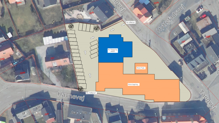 Det ønskede projekt med butiksudvidelse og etablering af ny udkørsel til Tangvej kræver ny lokalplan og udarbejdelse af nyt kommuneplantillæg.