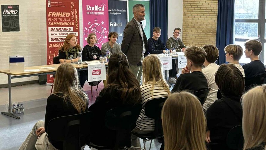 De seneste tre uger har der stået politik på skoleskemaet i 8., 9. og 10. klasse på Privatskolen i Frederikshavn, og arbejdet kulminerede i går, hvor unge politikere var inviteret til valgdebat på skolen.