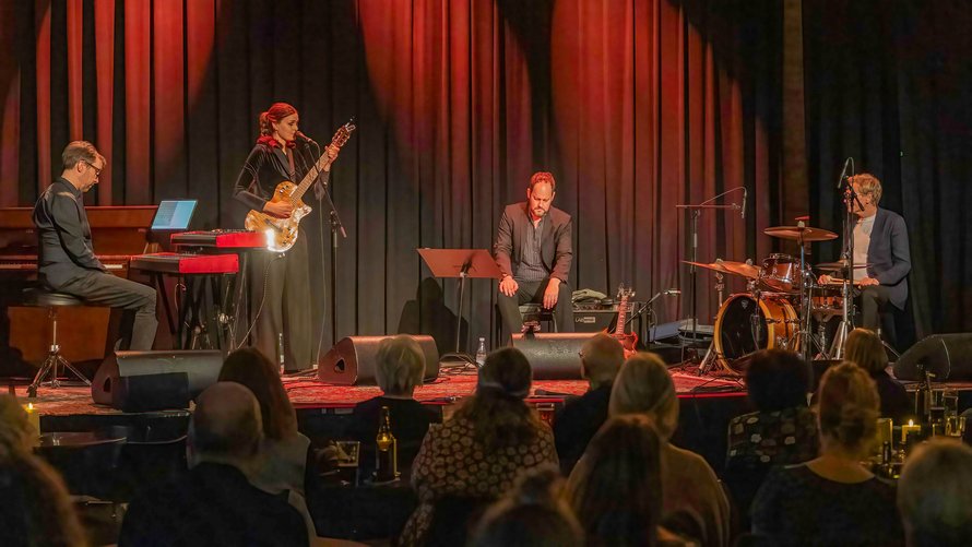 Bandet, der var med, bestod af Jonas Berg (keyboard og piano), Gustaf Ljungreen (guitar og lapsteel), og Emil de Waal (trommer og percussion) og de lagde en utrolig både diskret og (når det var nødvendigt) markant backing. Det var en fornøjelse at se, hvordan Emil de Waal fægtede med trommestikker og masser af percussion, at se hvordan Jonas Berg til tider helt krumbøjet over sit keyboard levede sig helt ind i musikken og høre, hvordan Ljungreens guitarspil gav sangene kant.
