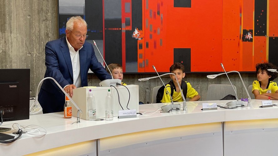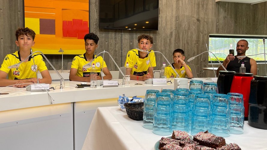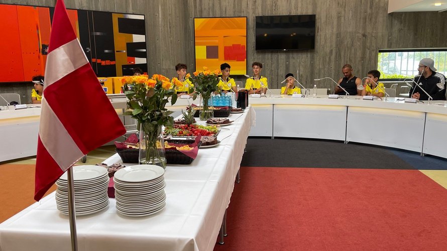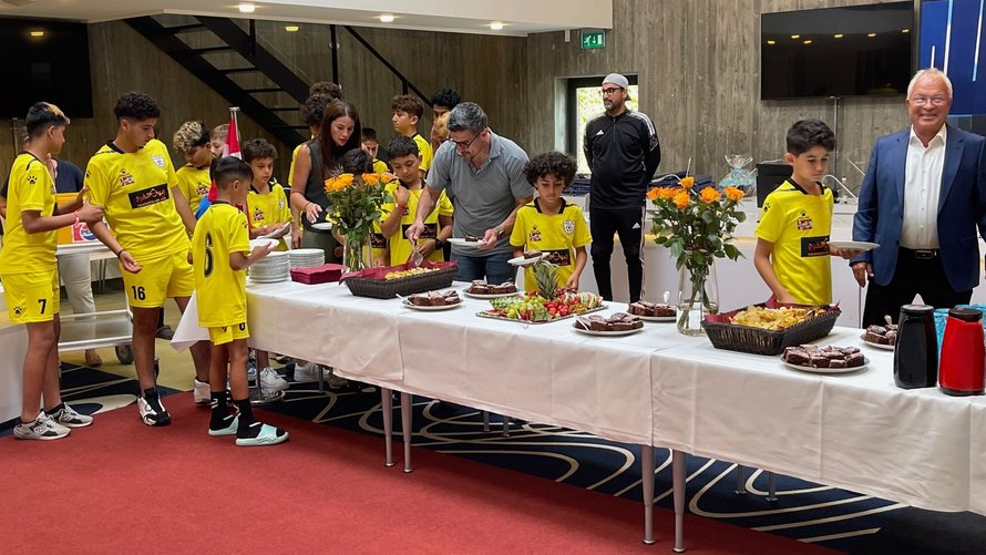 Spillere, trænere, ledere og forældre fra Tyre Football Academy i Libanon var onsdag eftermiddag inviteret til reception i byrådssalen på Frederikshavn Rådhus.