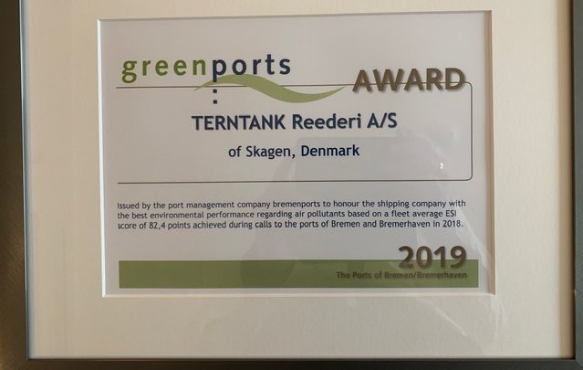 Greenports Awards blev overrakt Terntank Rederi på konferencen Sustainable Shipping i Bremen, og i begrundelsen hedder det, at Terntank arbejder kontinuerligt, bevidst og med succes for at reducere brændstofforbruget og forbedre miljøpåvirkningen, og Terntank er dermed en rollemodel i den maritime transportsektor.