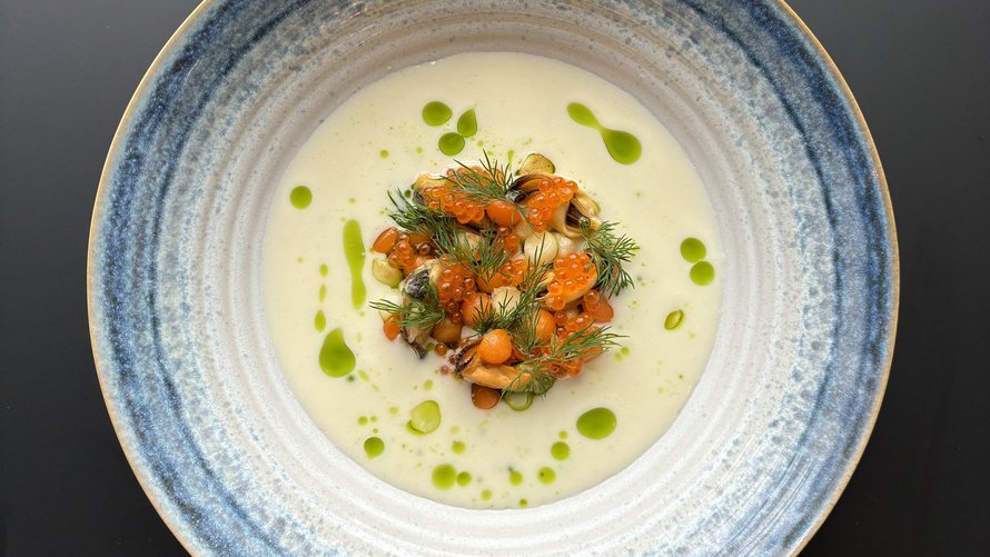 Røgede muslinger, dild, ørredrogn og rodfrugter