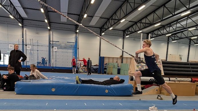 Næste øvelse var stangspring. En øvelse, som han også nyder. Det blev også en sejr på 3,60m og inde.PR.