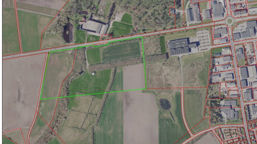 Som det fremgår af kortet, drejer det sig om grunden ved siden af den tidligere MARTIN-fabrik, hvor Lighthouse Business Park nu ligger, og hele vejen op til Flade Kirkevej.