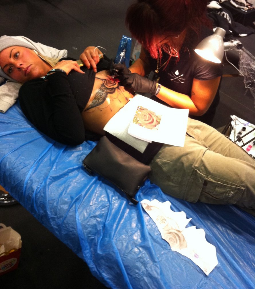 Flere af kunderne hos de tatovører, som har stande, har booket deres tid i forvejen. Sandie Grandt fra Frederikshavn, sygeplejerske og mor til to drenge, har forudbooket hos en norsk tatovør "Tigr Tattoo", som har færdiggjort et "half sleeve", hvis man skal bruge et tattoo-begreb. Det vil sige en tatovering på overarmen.