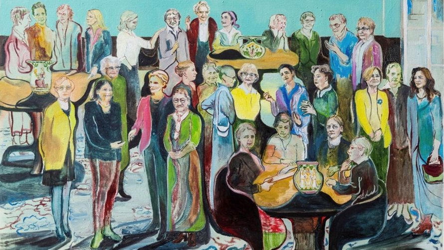 Mød Mie Mørkeberg kl. 19.00 i Kulturcenter Vendsyssel i Sæsing og få indsigt i både aktuel kunst og i historie med afsæt i det store gruppeportræt med symboler taget fra kvindehistoriske begivenheder og bevægelser.